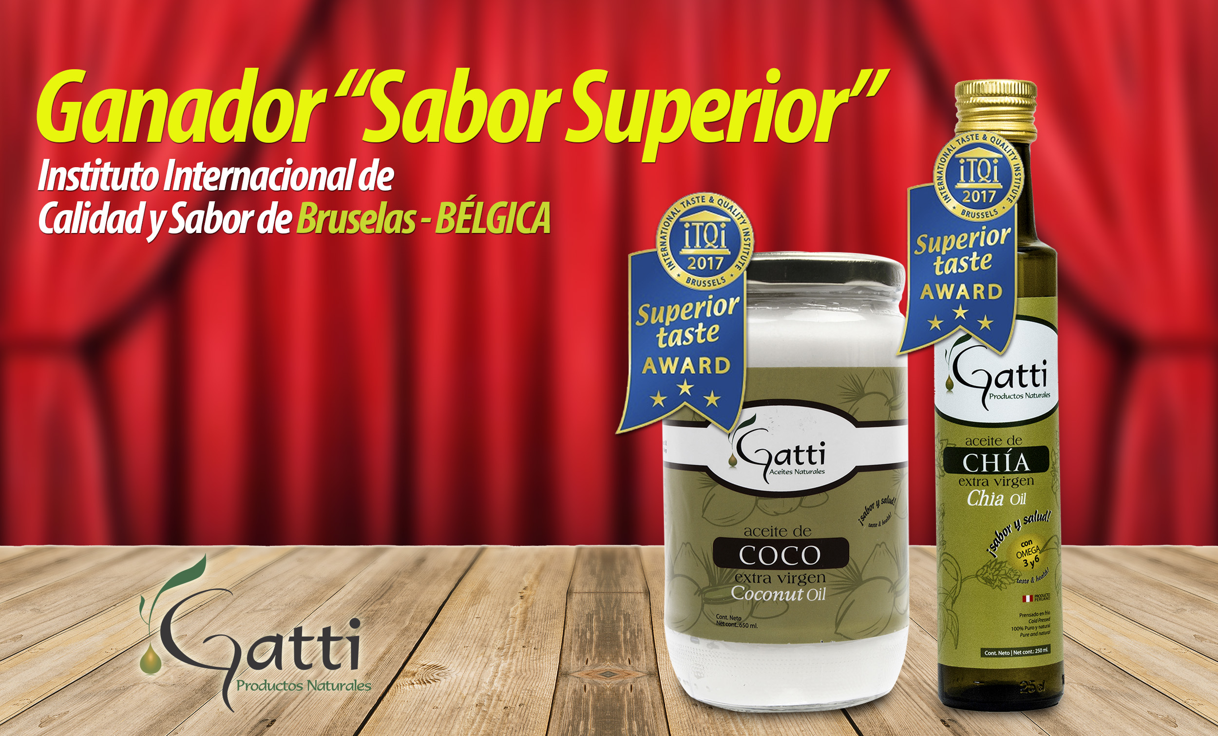 Con nuestros productos aceite extra virgen de coco Gatti y Aceite extra virgen de chia Gatti, por los que obtuvimos 3 estrellas doradas y 2 estrellas respectivamente.