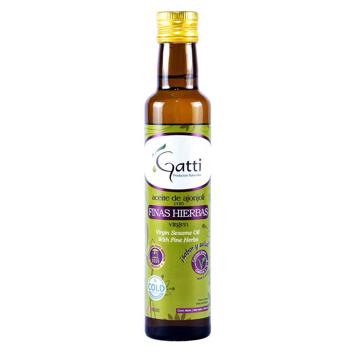 - Es un aceite pensado en darle un toque distinto a sus comidas. Este aceite tradicional ha sido reposado en hojas de laurel, romero, tomillo, orégano y pimienta negra, logrando un aroma y sabor exquisito que se desprende cuando cocina sus comidas. Así como el aceite de ajonjolí GATTI soporta temperaturas de hasta 220 grados sin degradarse